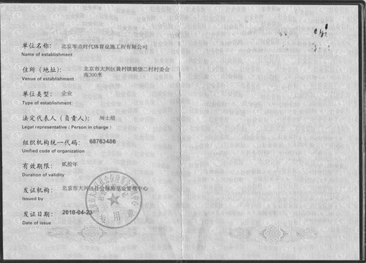 Social Insurance Registration Certificate