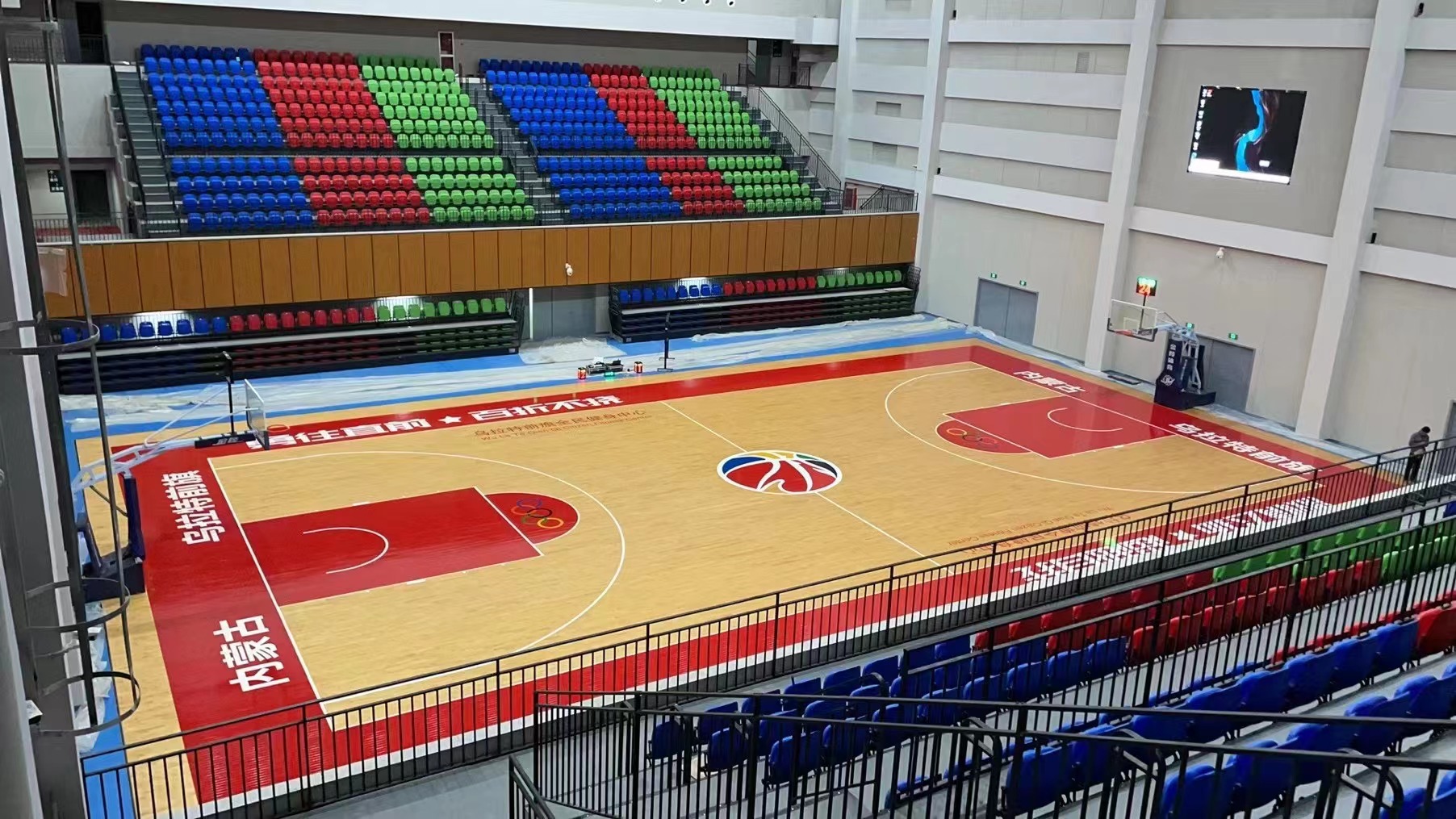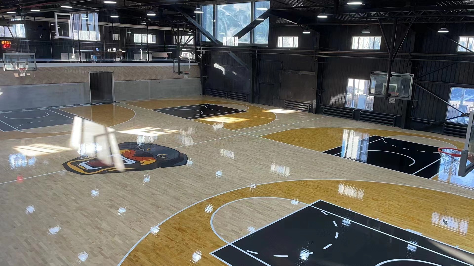 Colored paint process of sports wood floor gives you different visual beauty