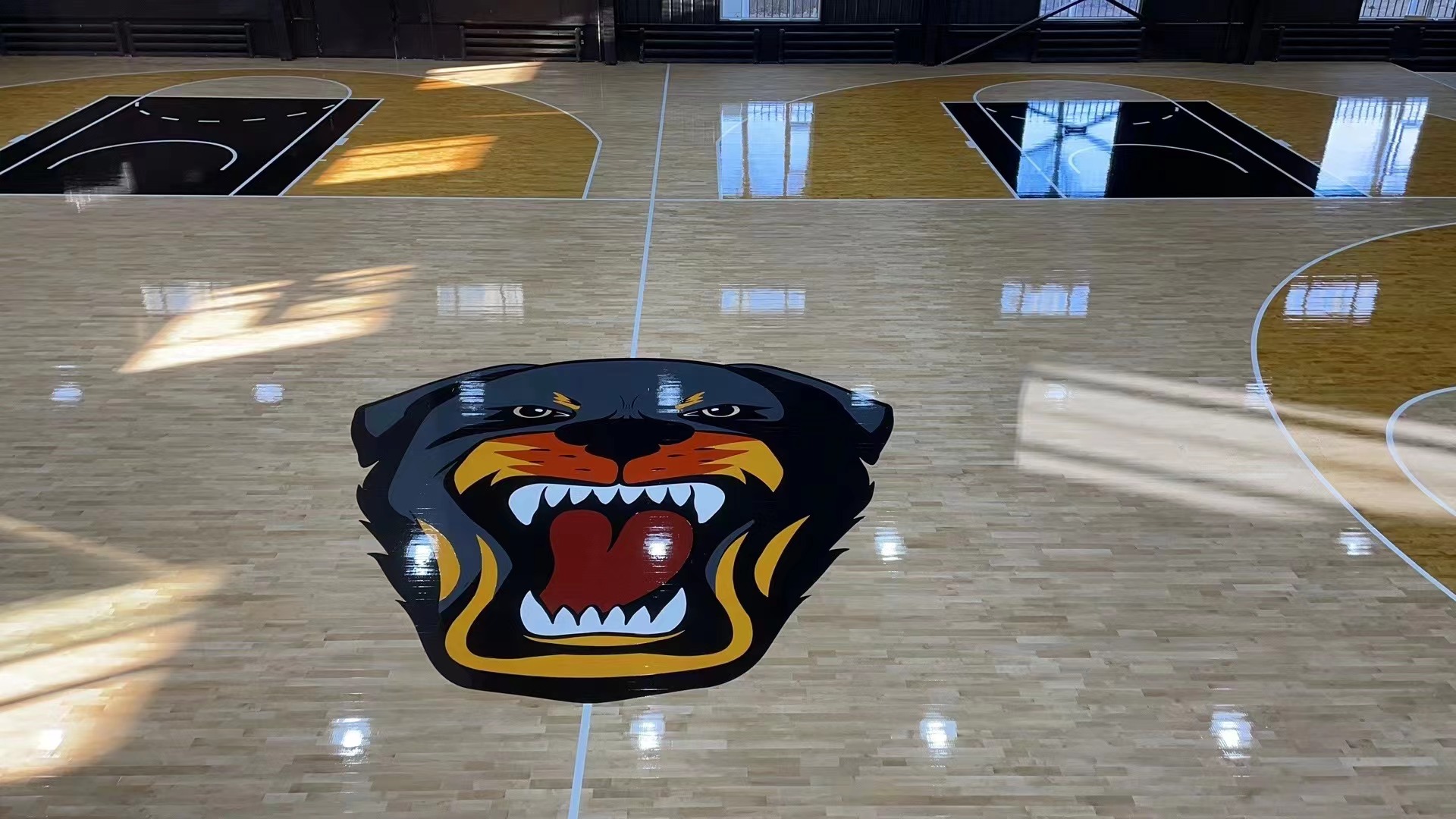 As the spiritual symbol of the basketball hall, the sports wood flooring color paint process is highly personalized and fashionable, which is popular with the public. It can be described as a beautiful landscape of the basketball hall and the finishing touch to build a fashionable basketball hall. On the wide field, the unique LOGO and pattern are outlined with smooth lines and bright colors, which is like a beautiful painting. It is lifelike and enjoyable!